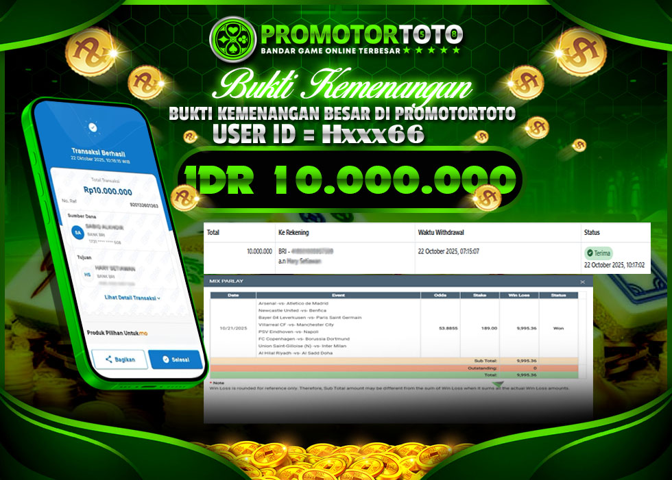 sudah mempercayakan PROMOTORTOTO sebagai Bandar Terpercaya yang membayar semua kemenangan member hingga lunas.